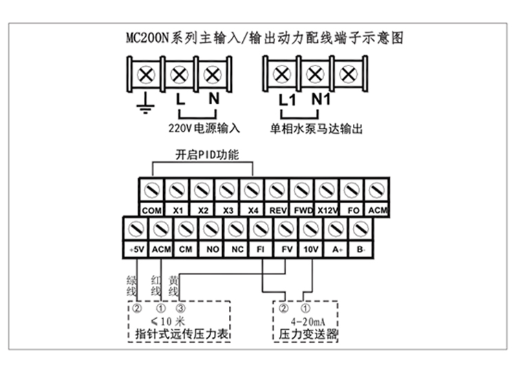 DFL200N單相恒壓供水變頻器的接線圖與設置方法