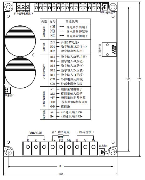 4.多種速度控制方式:模擬量輸入0-5VDC,0-10VDC,0/4-20mA;面板電位器調速(更改參數可設置上下按鍵調速);外接電位器調速;可通過485通訊調速。